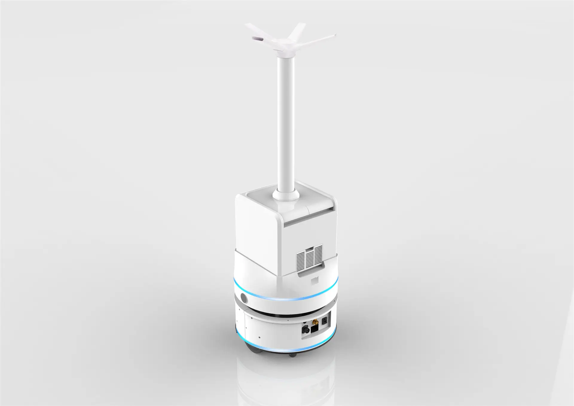 消毒防疫機(jī)器人簡(jiǎn)稱消毒機(jī)器人,機(jī)器人為載體,在機(jī)器人內(nèi)部裝置消毒系統(tǒng),有霧化消毒機(jī)器人、紫外線消毒機(jī)器人、等離子消毒機(jī)器人、強(qiáng)光脈沖消毒機(jī)器人等。其中霧化消毒機(jī)器人應(yīng)用最為普遍,霧化消毒機(jī)器人是將消毒霧化,產(chǎn)生消毒氣體,利用機(jī)器人的氣動(dòng)系統(tǒng)將消毒氣體快速的在室內(nèi)空間擴(kuò)散,增加消毒的覆蓋面和均勻性,能有效、無(wú)死角地殺滅空氣中的致病微生物,消毒機(jī)器人能夠根據(jù)設(shè)定的路線自動(dòng)、高效、精準(zhǔn)的對(duì)室內(nèi)進(jìn)行消毒防疫。